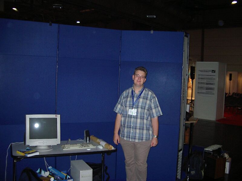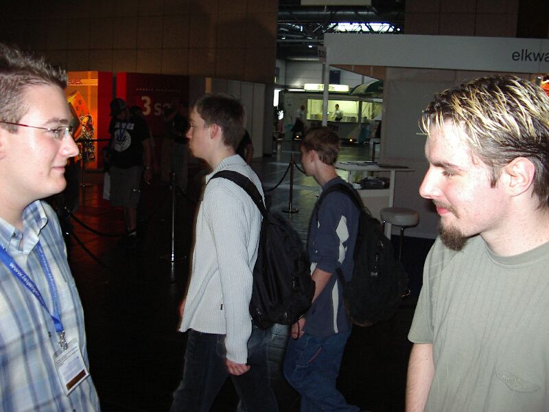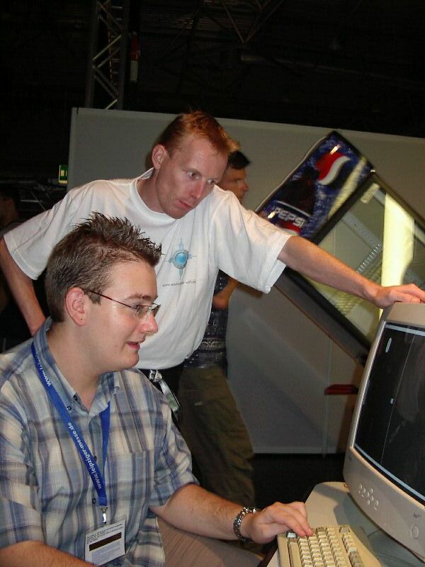 René brachte seinen PC mit 19"-Monitor mit. Anlocker war meist die Cubed-Demo oder eine spezielle Version von Operation Chateau Pregny (ohne Spiel-Elemente, man läuft nur durch die Räume). Dank 2 GHz und einer schnellen Graphikkarte liefen die Programme pfeilschnell.