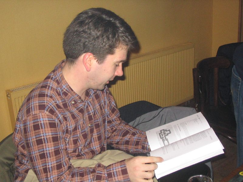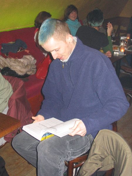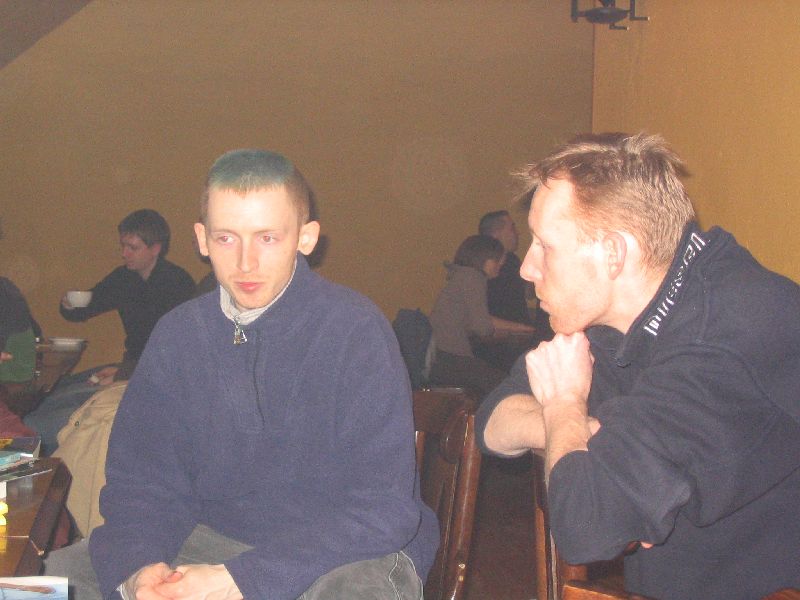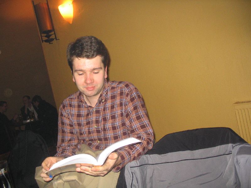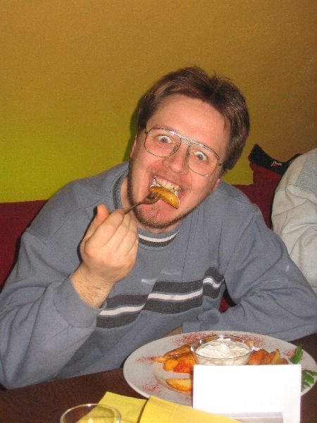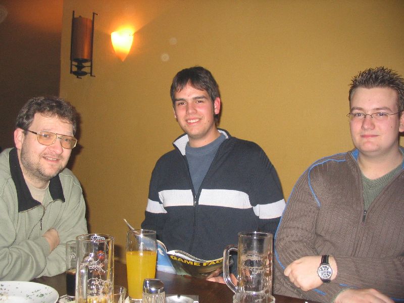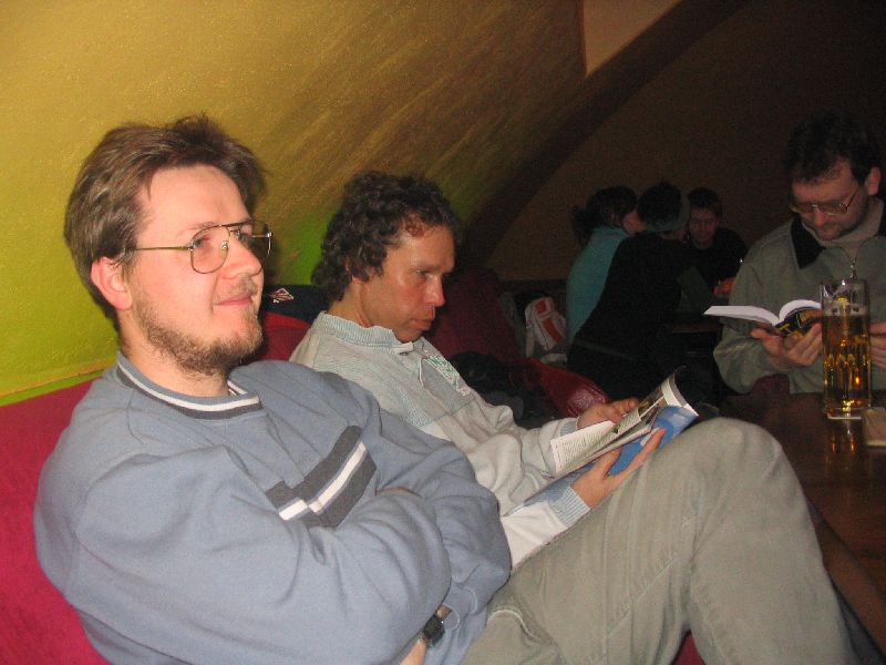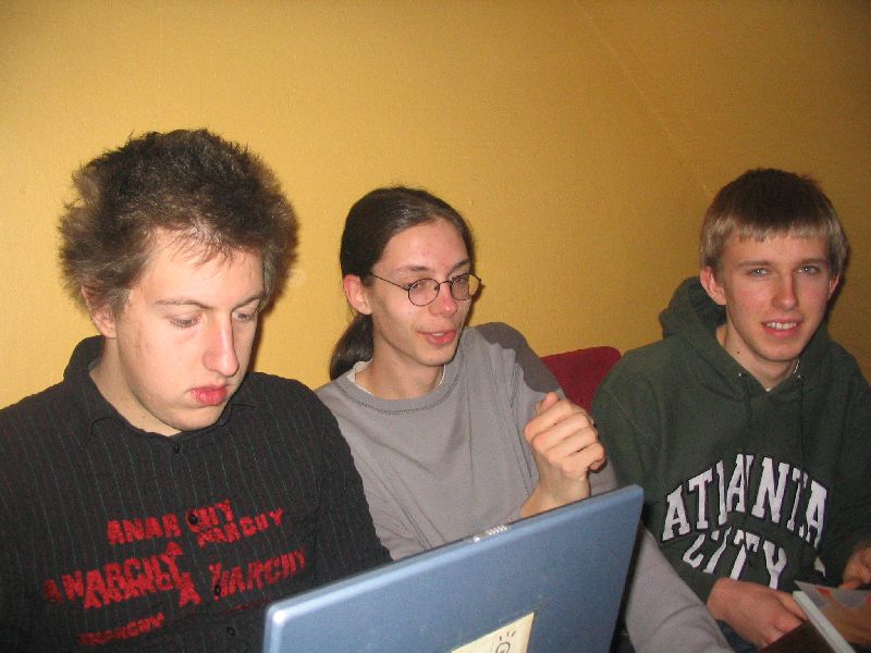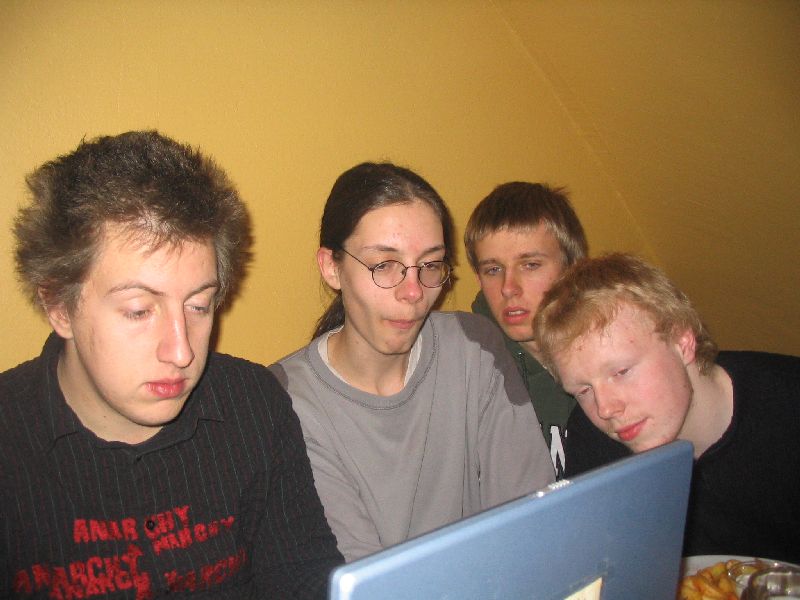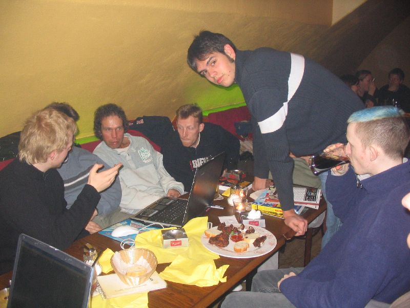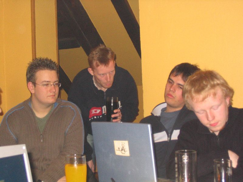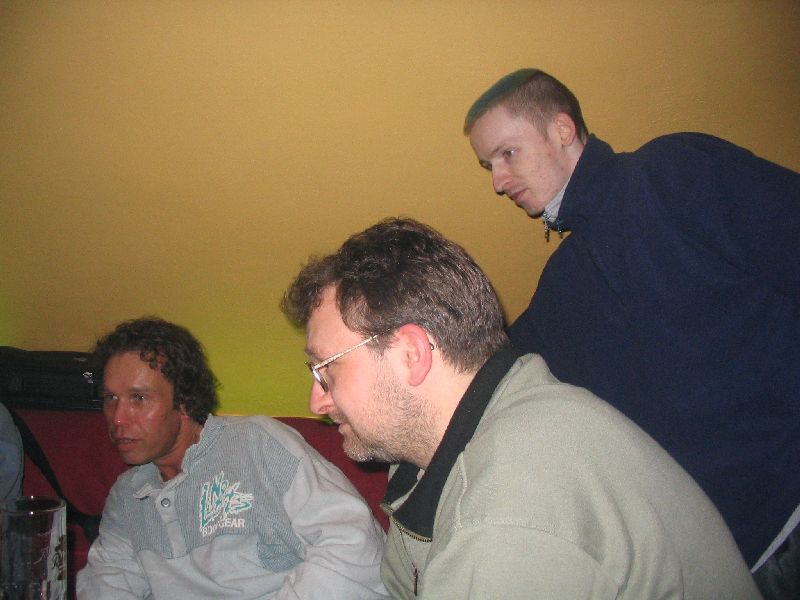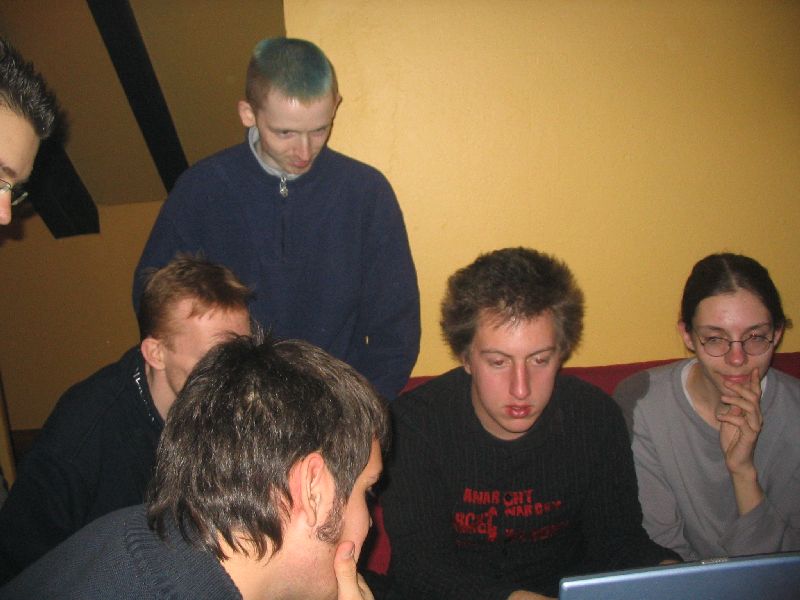 Es waren sagenhaft viele Leute da - neben den üblichen Verdächtigen erstmals: MasterK (extra aus Cottbus angereist), D2006 (Chemnitz), ChrW (der erst seit kurzem in Leipzig wohnt und Textadventures entwickelt; aber wir kriegen ihn noch rum) und DerHase (der im ersten Semester in Leipzig studiert).