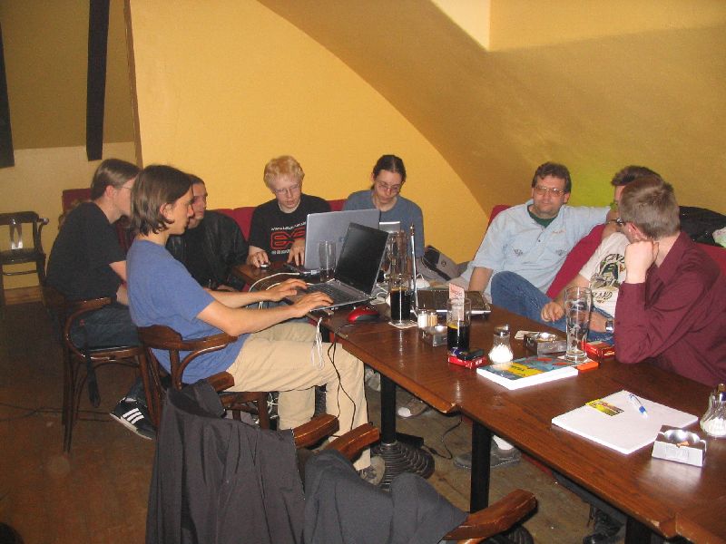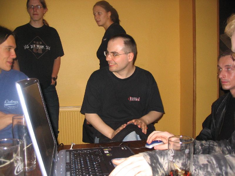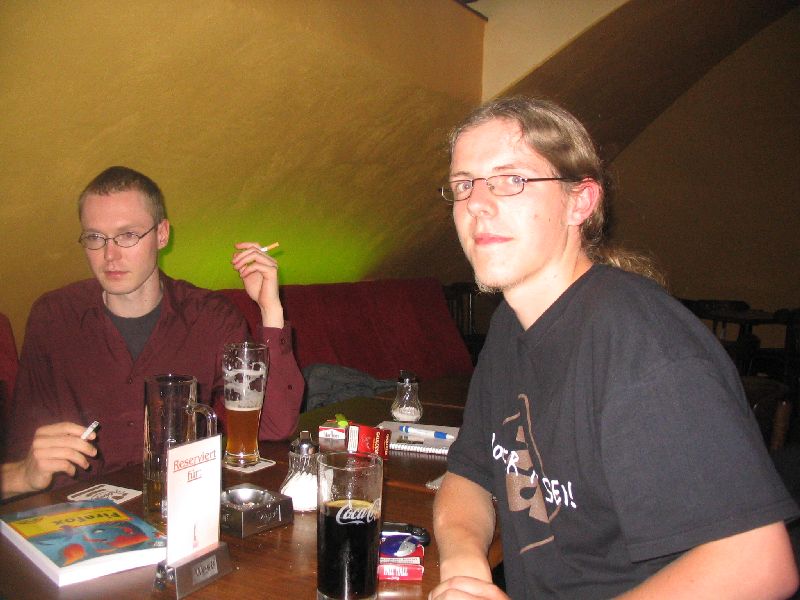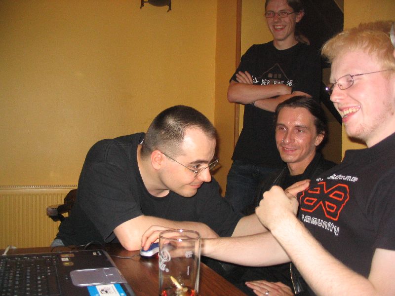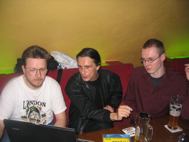 Nach dem eigentlichen Stammtisch saß der harte Kern - ToxicTom, René, Cornelius, Vincent - noch ein Stündchen im Freien. Sie fuhren dann zu René, wo zu dritt "Hard Boiled" geschaut wurde (auf Kantonesisch, mit englischen Untertiteln), während ToxicTom es vorzog, im Regen nach Hause zu radeln. ;)