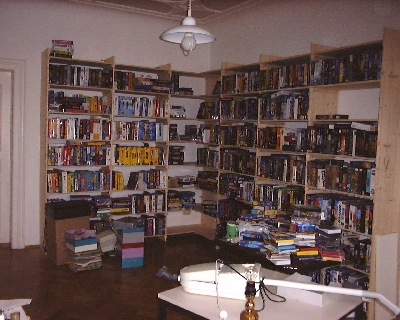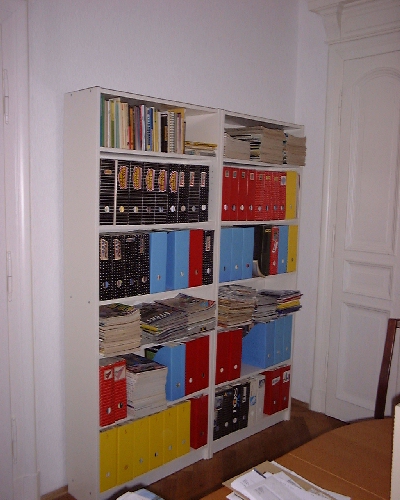 Regal für PC-Software; 2.50 m hoch, 6 m lang, 2 Reihen Software