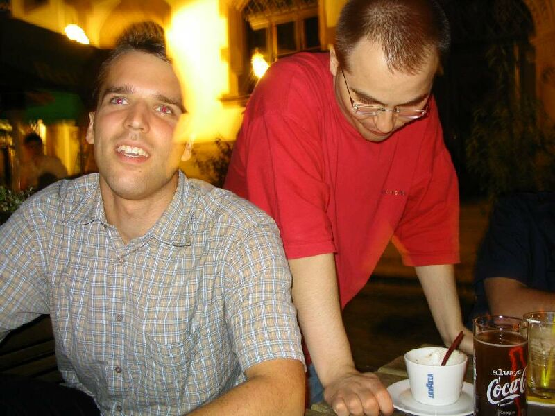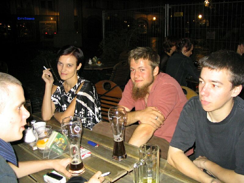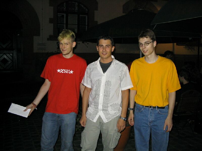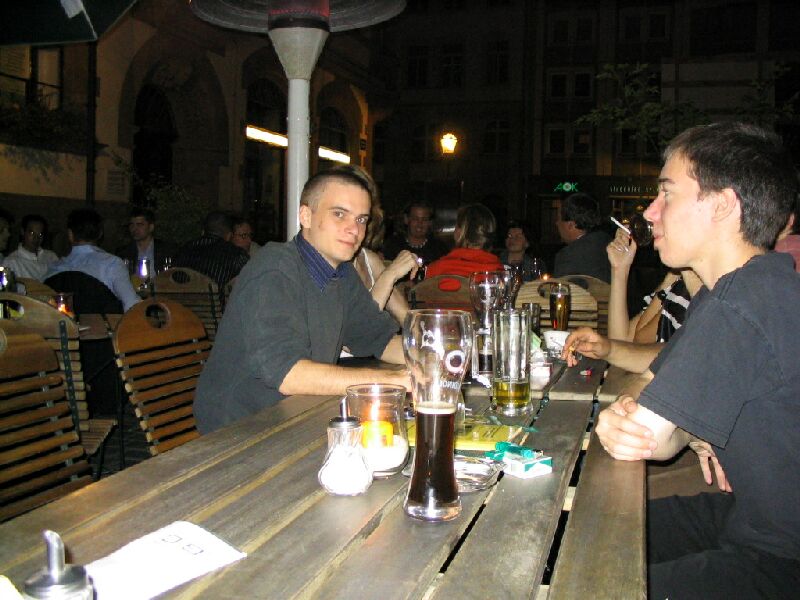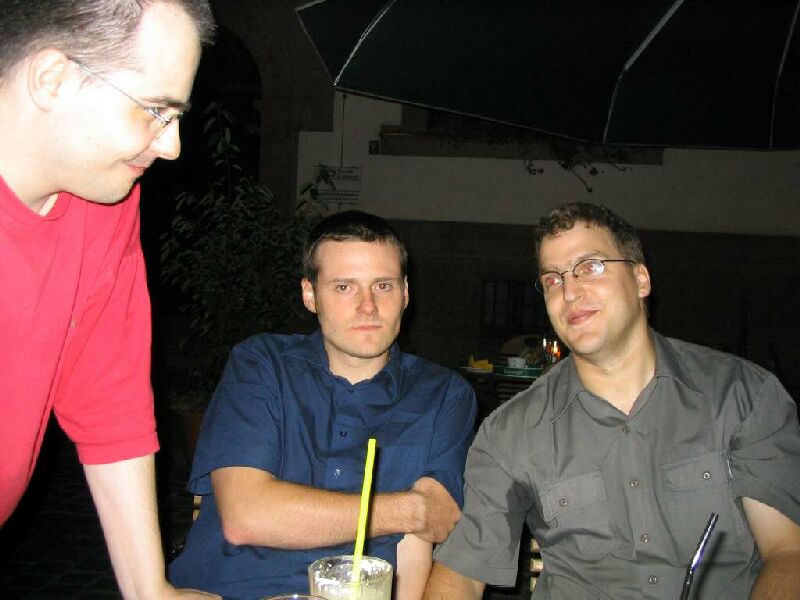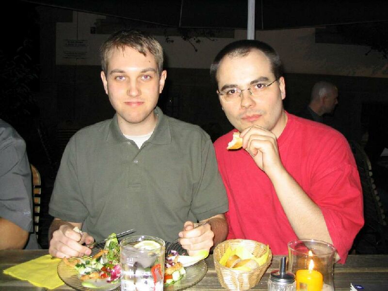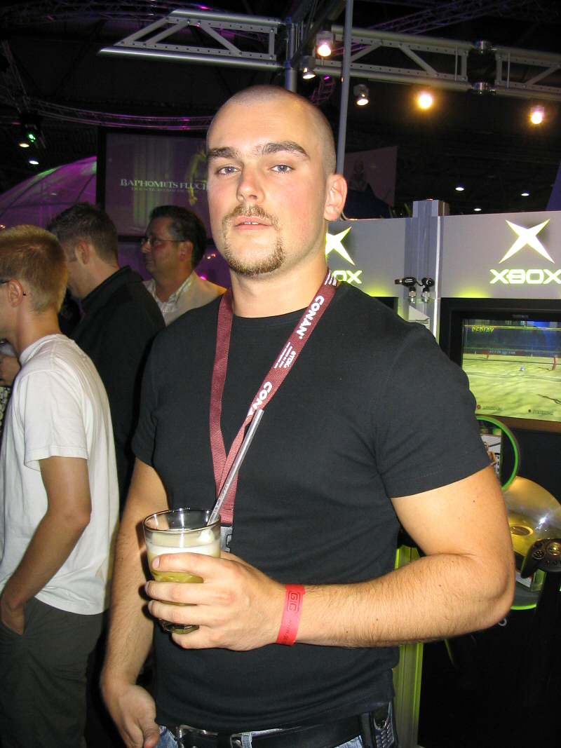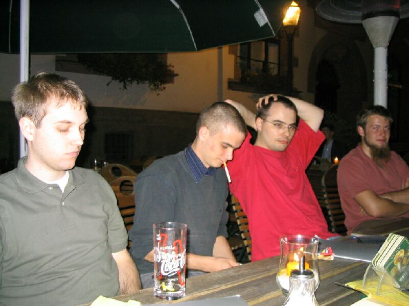 Treffen am TDK-Stand am Donnerstag links: mit Brille: mit dem roten Band: lange Haare: |