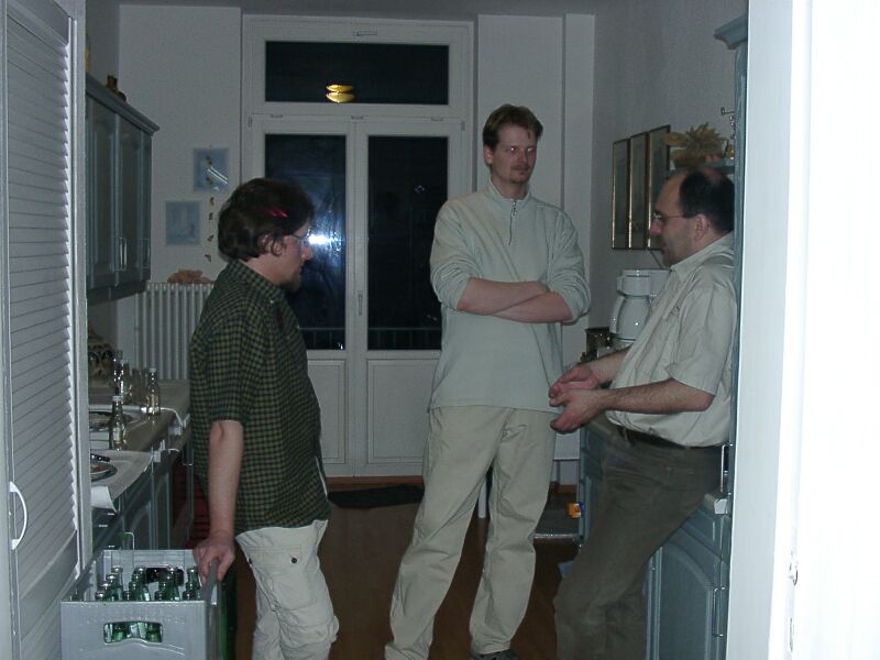 Angeregtes Gespräch: Lutz Staudte mit Frank Noack @ moewendreck.de und Frank Salomon @ oldbits.de. |