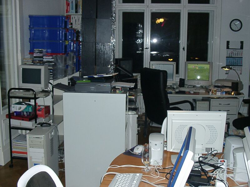 Impression aus dem Heimbüro von René Meyer. Am PC: Im Wechsel Zoo Tycoon, Sven Bomwollen und Moorhuhn. |