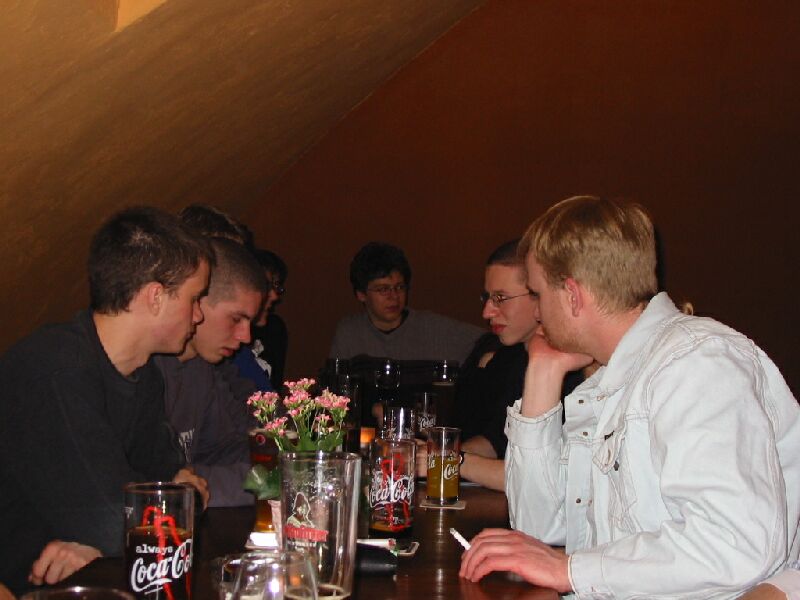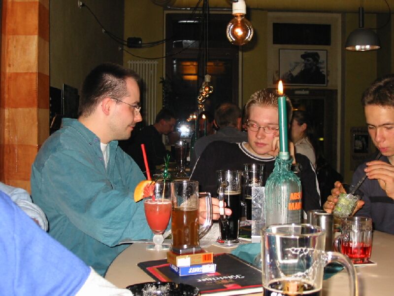 Das Haupttreffen am Freitag, in der Leipziger Gaststätte Südbrause. Wurde zusammengelegt mit dem monatlichen Stammtisch Leipziger Webmaster, so daß wir bald zwei Dutzend Leute waren.Achtung für Modem-Leute: Die Bilder umfassen insgesamt 1,5 MB.
