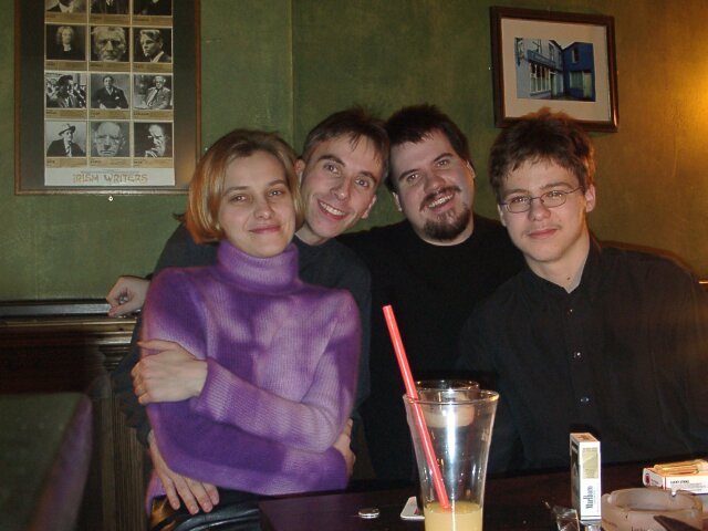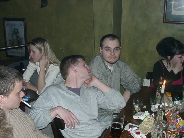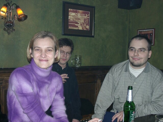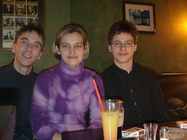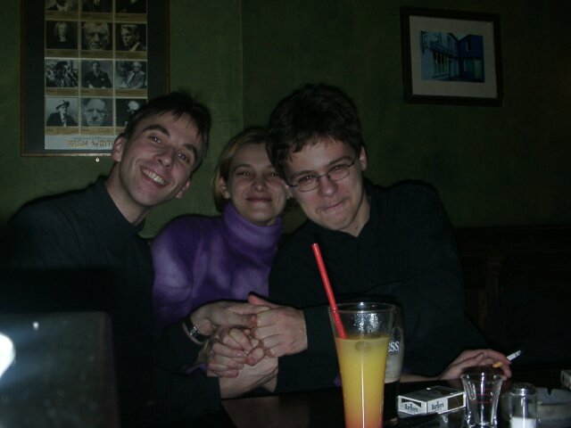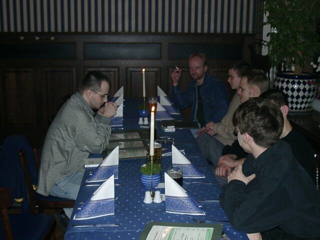 Robi, ?? und René am Tisch mit wildfremden Mädels. "Computer? Ja, habe ich schon mal gesehen ..." |