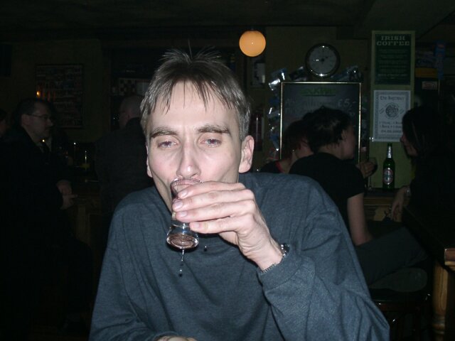 *brrrr* Stefan @ kurowski.de, ein Freund vom Mogel-Power-Team, probiert Bitterwhisky aus dem kühlen Irland. |