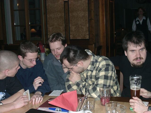 Pläneschmieden: 2x spieleflut.de, Frank @ moewendreck.de, René @ mogelpower.de. Gläserner Blick, alles ist egal: Thomas alias nightmaro @ onlinekosten.de/hardware/. |