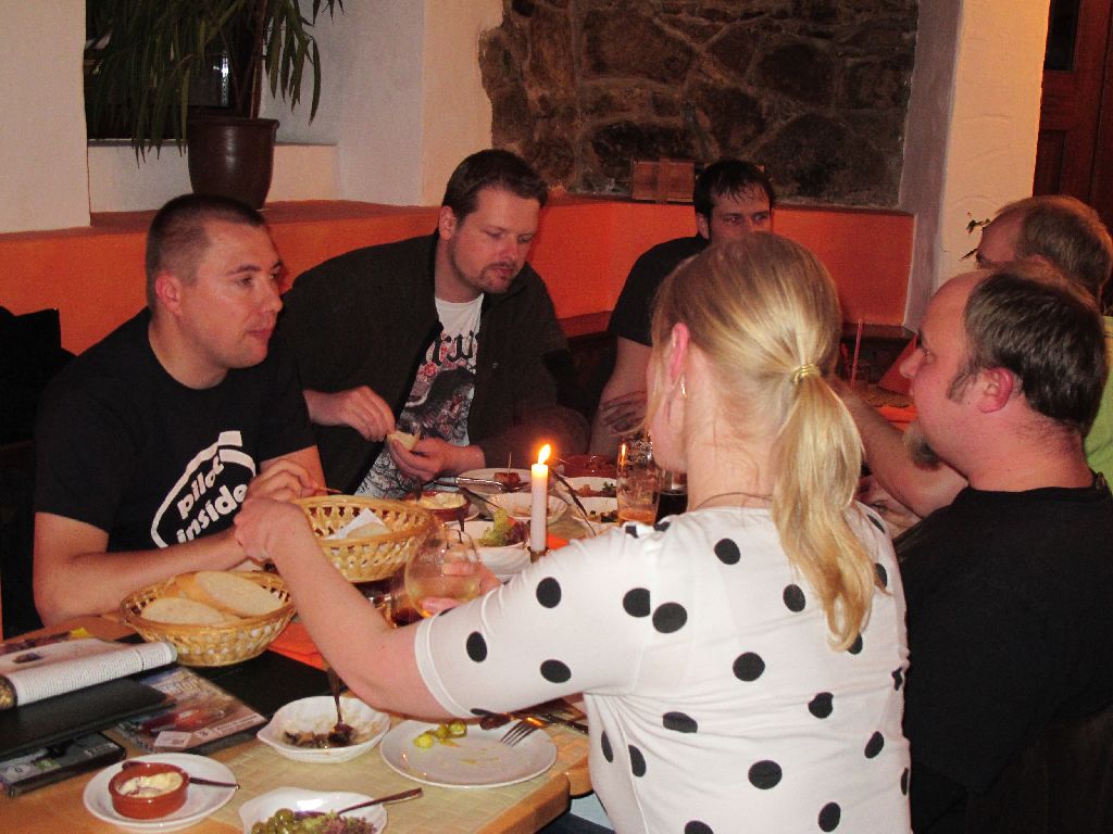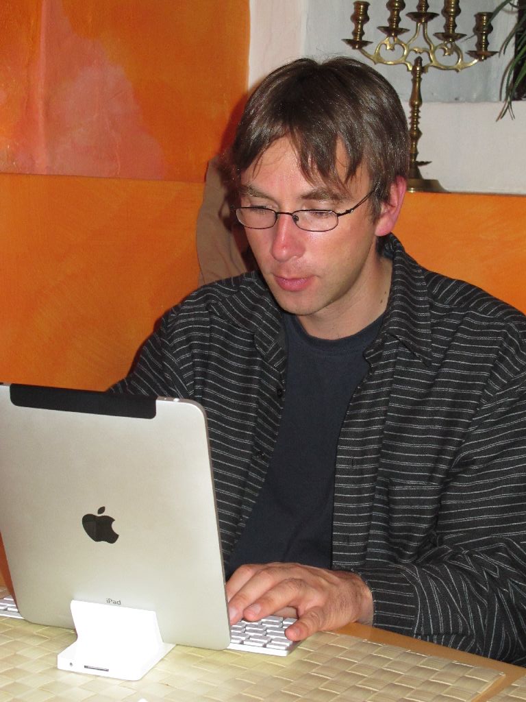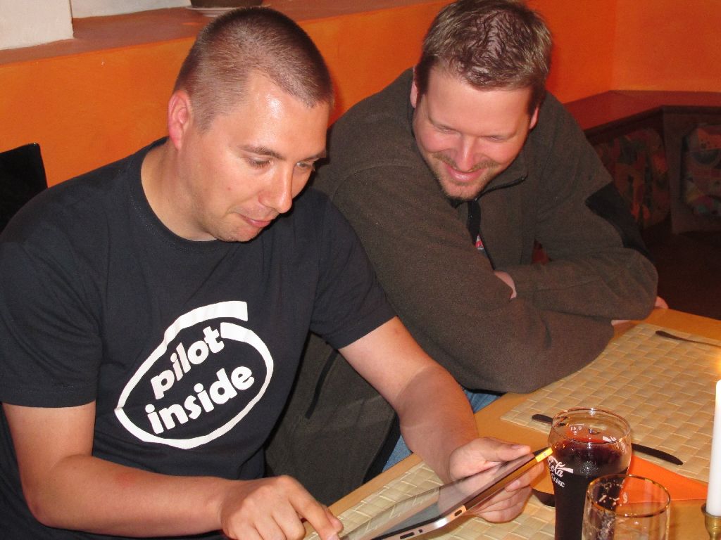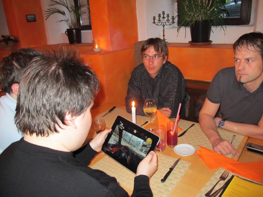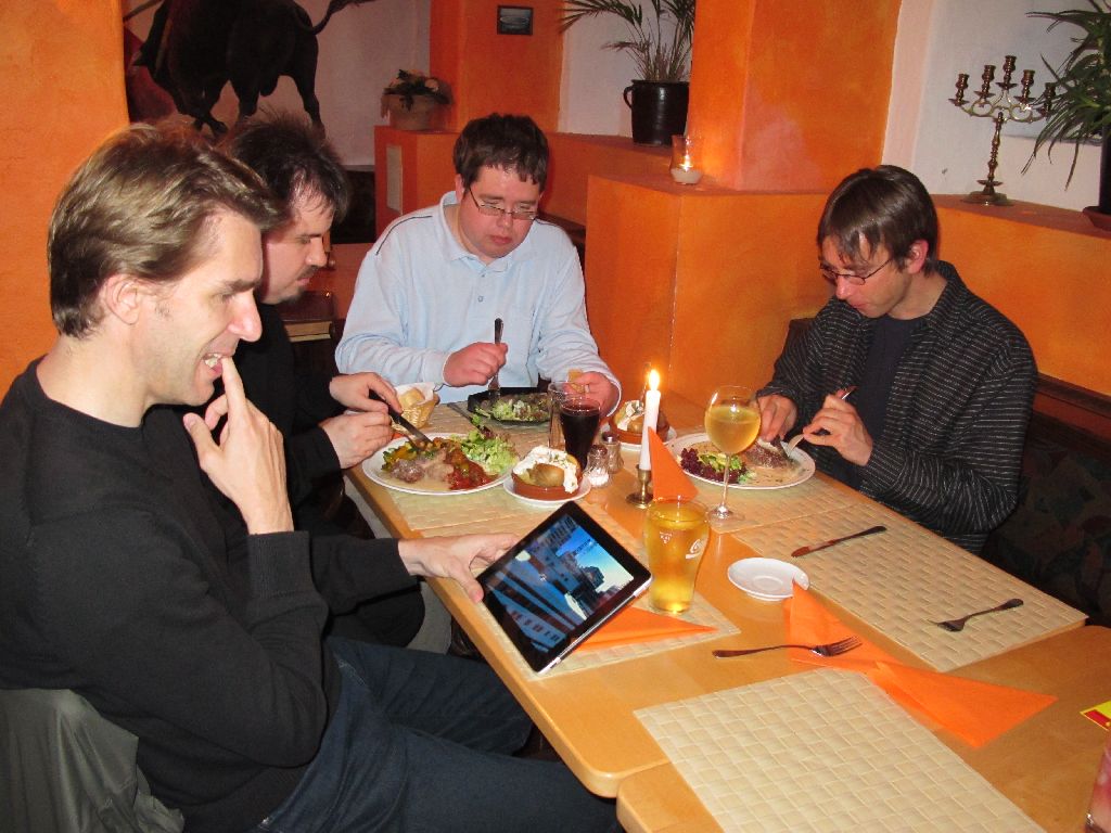 Beim Spanier El Matador an der Arena. Alle mit iPad!