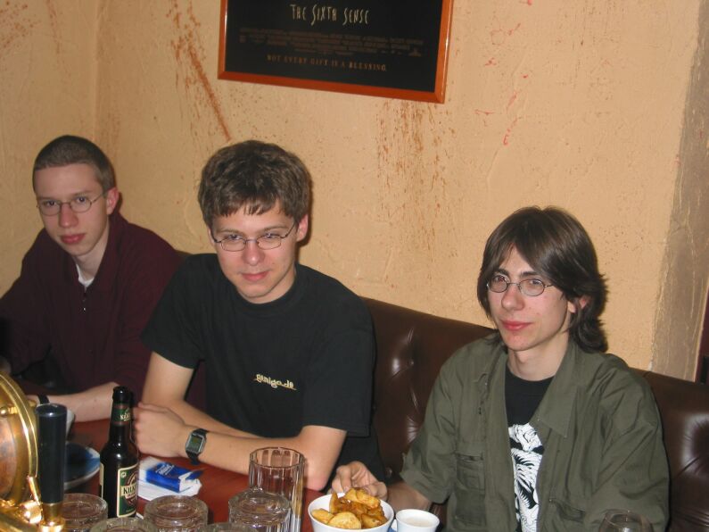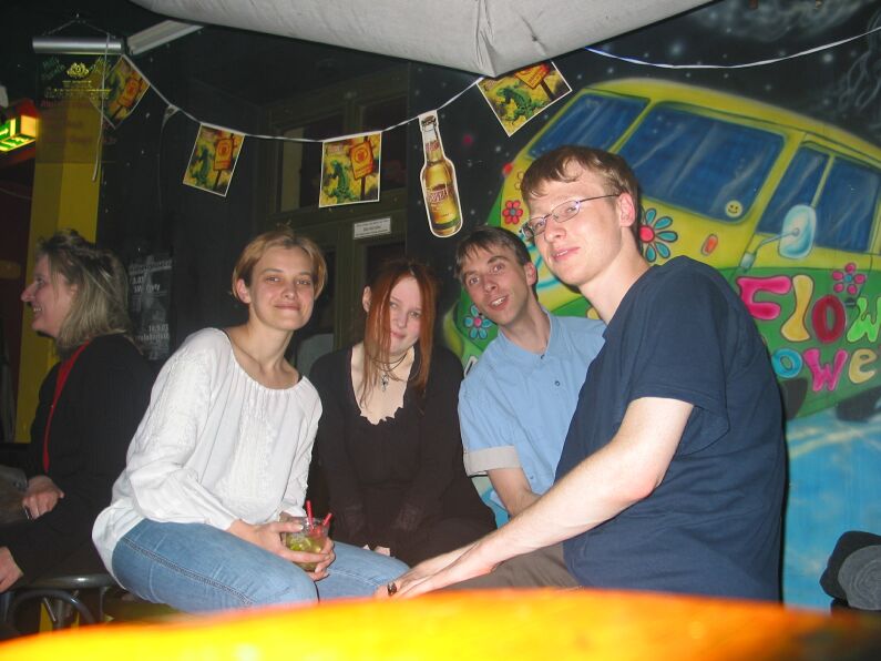Nach den Frauen-Defiziten der vergangenen Stammtische, die Jans Tochter nur unzureichend stopfen konnte, gab es diesmal weibliche Gesellschaft in inflationärem Ausmaß: Nach ihrem Zurückzug nach Leipzig wird Katja künftig wieder am Stammtisch teilnehmen. Und Nathe aus Essen war zu Besuch. Eingekehrt sind wir ins M-Seven in der Münzgasse, eine Möchtegern-Filmkneipe mit erschreckend kleinem Speiseangebot. Insgesamt war es aber ok dort. Der harte Kern zog danach ins Flower Power.