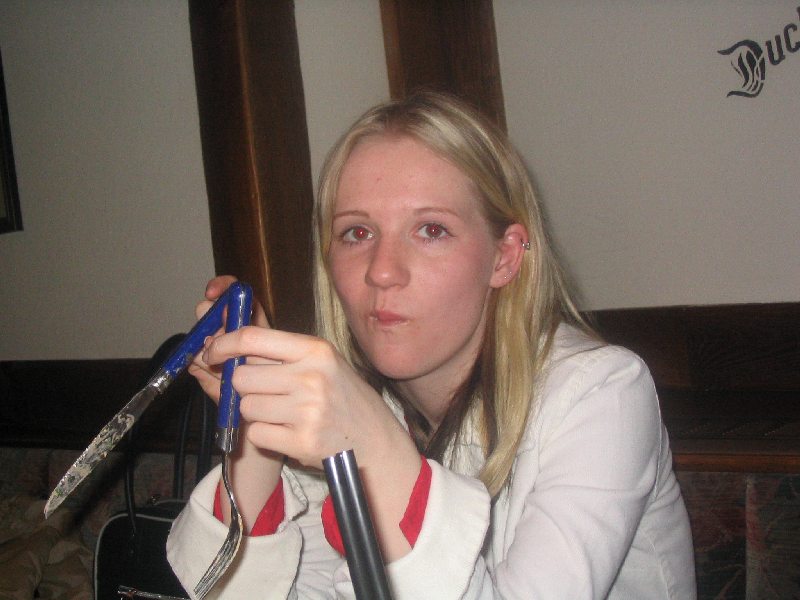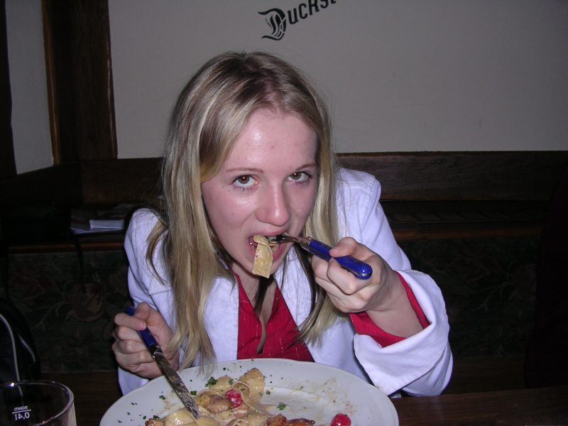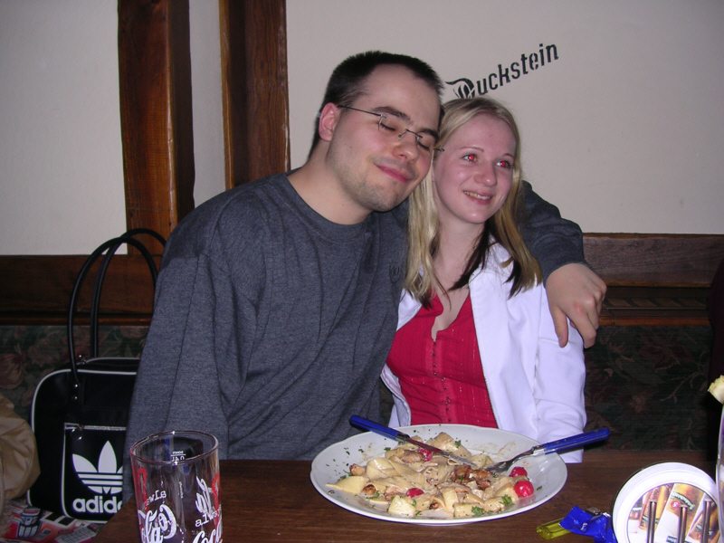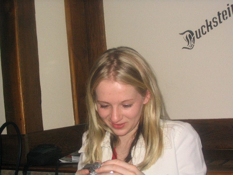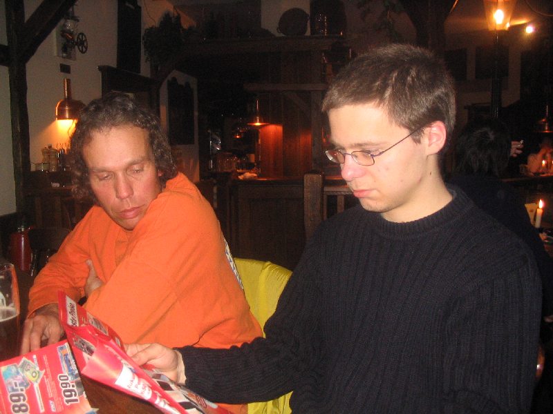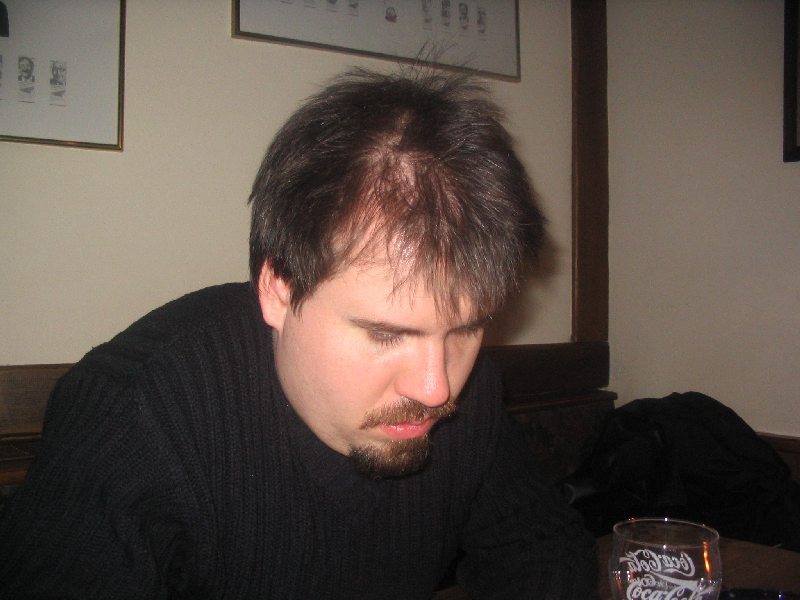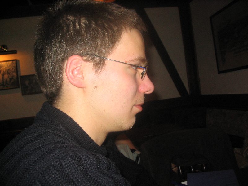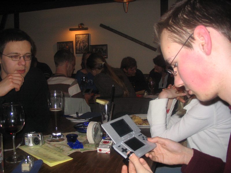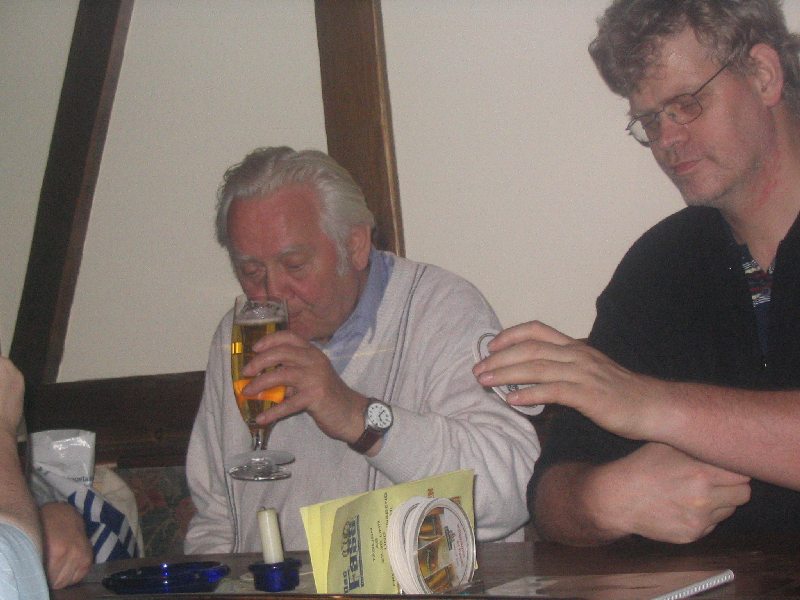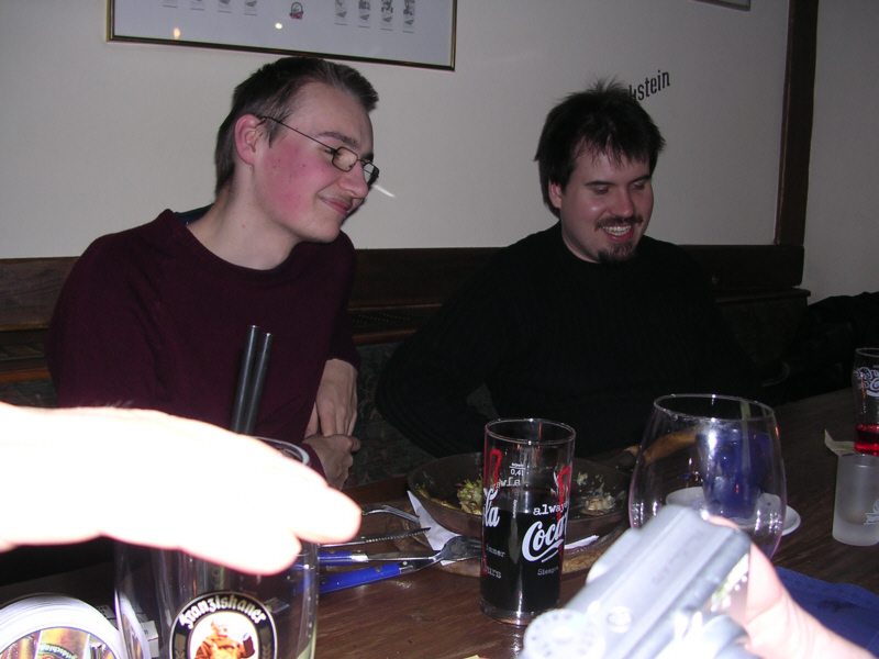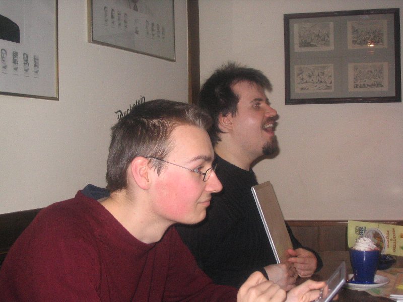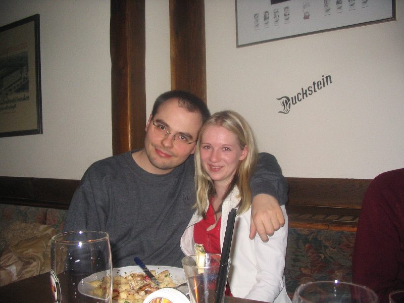 Dieser Stammtisch war in zweierlei Hinsicht besonders: Zum einen nahmen die meisten zuvor an einer fabelhaften Lesung eines Science-Fiction-Autors im Haus des Buches teil, die so fesselnd war, daß viele dort blieben und der Stammtisch recht dünn besetzt war. Außerdem war Steffi! aus Berlin da. Sie genoß danach das Extraprogramm für Gäste: Völkerschlachtdenkmal, Cospudener See, McCormacks - und schlummerte sanft in Nicos starken Armen ein.